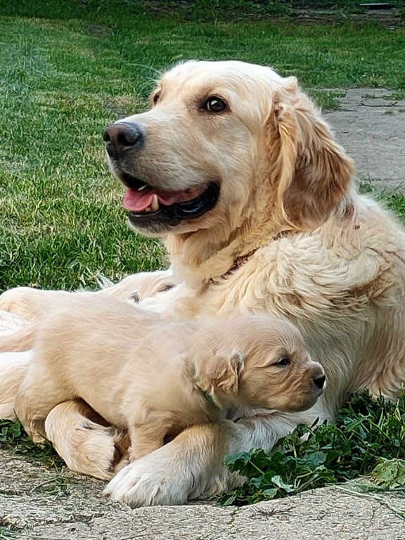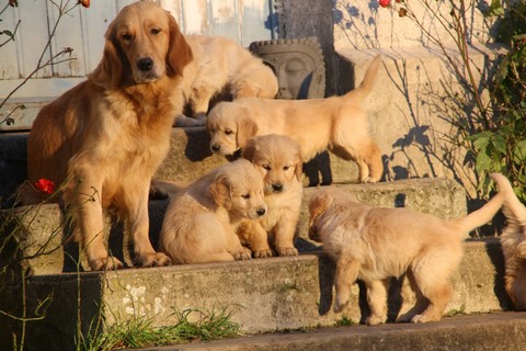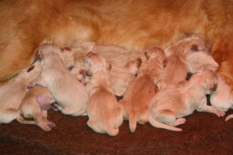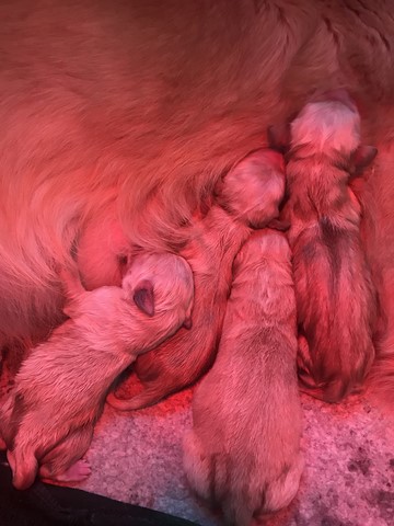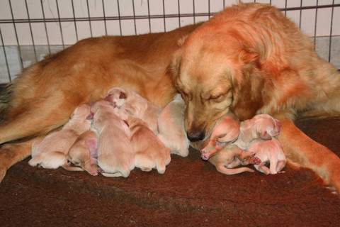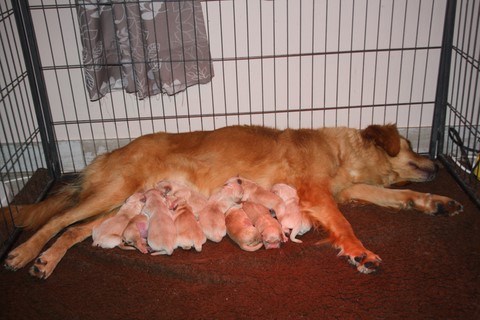 Voici quelques séquences des premières heures de vie de nos petits Golden Retrievers.